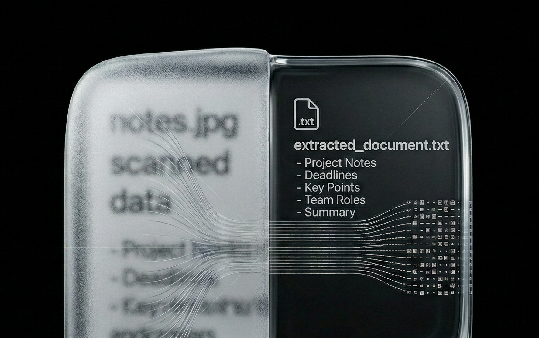 Rename an image to .txt. Morpholder reads the photo and extracts all legible text into a clean document.